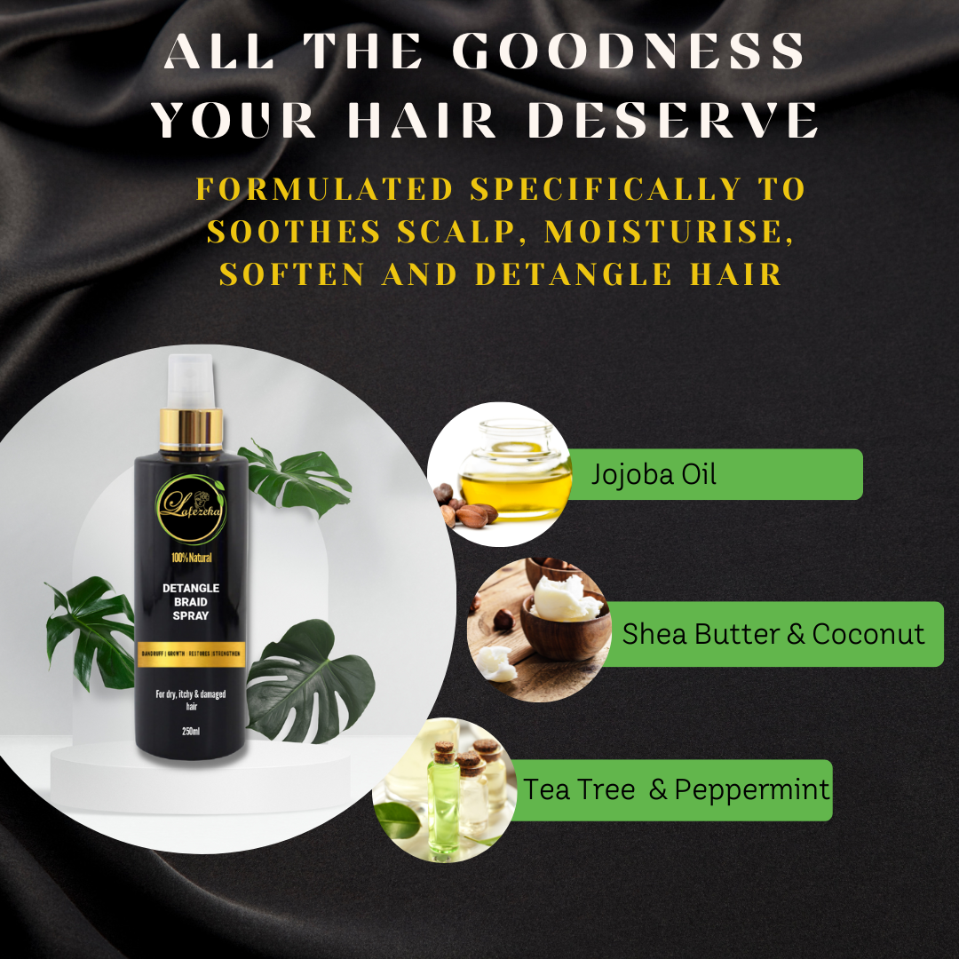 DETANGLE SPRAY BOTTLE: LAFEZEKA hydrating detangling spray instantly softens and detangles hair. This lightweight formula provides luxe moisture and nourishes each strand, giving you added shine with a smooth finish.